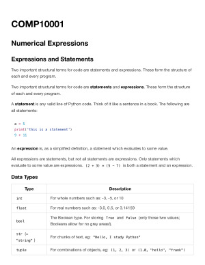 *The author's final score is 93%, without any prior programming experience before enrolling - that's why I understand exactly what confuses beginners the most! Topics include: - operators (arithmetic, relational, logical) - booleans and truth testing - expressions vs. statements - data types (int, float, str, list, tuple, dict) - type casting and input handling - slicing, indexing, and sequence operations - string methods and formatting (f-strings, alignment, precision) - functions, parameters, return values, and default arguments - methods (string/list/dict methods, dir(), help()) - while loops, for loops, range(), loop conversion - dictionaries & sets (keys, values, items, membership, mutation) - unpacking, enumerate(), nested sequences - iteration patterns and common pitfalls This summary covers all core weeks of COMP10001 and is structured for fast revision, with clear examples and explanations throughout.