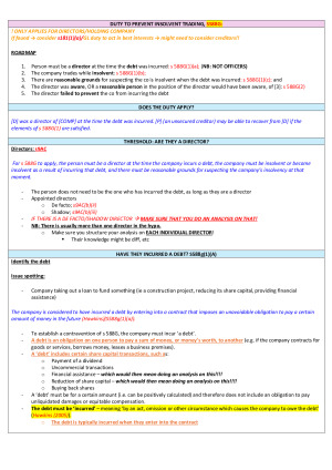 These are the 80 pg notes I used in Corporations Law, which got me an 81 in the final exam. They are clear, easy to follow, and include all the provisions needed from the Corporations Act. Topics include: Incorporation Managing companies - Internal governance - Division of decision-making & meetings - Procedural irregularities Corporate liability - Contractual liability - Other liability Director/officer duties - Who owes the duties? - Which duties? * Act in good faith * Act for proper purpose * Care, skill & diligence * Prevent insolvent trading - Avoid conflict - Avoid profit from position Shareholder actions Share capital
