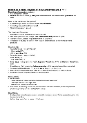 Comprehensive notes covering weeks 1-12, summarising all key content from lectures in a concise and organised manner. Used by many students for HD marks, including myself. Topics: - Blood as a fluid. Physics of flow and Pressure 1 (W1) - Blood as a fluid. Physics of flow and Pressure 2 (W2) - Blood: Diffusion, Osmosis and Tonicity (W3) - Respiration and the Physics of Gases (W4) - Principles of Biomechanics (W5) - Overview of Skeletal Tissue Mechanics (W6) - Work, Energy and Thermodynamics (W7) - Bioelectricity (W8) - Bioelectricity and the Cell Membrane (W9) - Waves, Optics and the Eye (W10) - Production of Ionising Radiation P1 (W11) - Medical Uses of Radiation (W12)