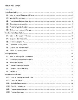 My MBB2 notes from Semester 2, 2025: - 💯 Helped me to achieve 99% on the final exam, and 94% overall in the subject - 🙆♀️ Hand-typed by me, a human (free from GPT hallucinations!), and incorporating content from lectures, readings and practical classes - 🗃️ Ready to be put into GPT and used to make flashcards (this is what I did - yay active recall for learning!) - ⌨️ Hyperlinked headings + key words = Easy to navigate + Ctrl F --- Covers 24 lectures across the 4 blocks: 💫 Clinical psychology - Intro to mental health and illness - Mental illness stigma - Psychosis and schizophrenia - Depression and anxiety - Personality and disorder - Culture and psychopathology 💫 Developmental psychology - Intro to dev psych + 7 themes - Cognitive development - Social development - Emotional development - Culture and Development - Genes and environment 💫 Social psychology - Intro to social psych + Identities - Social comparison and distance - Person perception - Obedience and persuasion - Cooperation and helping - Prejudice 💫 Personality psychology - Intro to personality psych + big 5 - Trait psychology - Biological approaches - Cognitive approaches - Personality assessment - Personality change