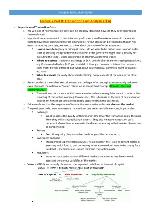 Final Exam Notes Comprehensive and well explained final exam notes for FINC3014 created from a range of resources: lecture slides, tutorial content, textbook and online resources. Most importantly: the notes actually have mathematical questions with worked out solutions that I did myself (i.e. typed step my step) because that was a big part of final exam MCQs that most people didn't get. They also have all the formulas and their interpretations summarised. These helped me gain a top 3 rank in the unit out of over 300 students. Note that these notes cover all the topics AFTER the mid-semester exam as we were told our finals would only test those topics. I also have mid-semester notes uploaded covering the first half of the course.