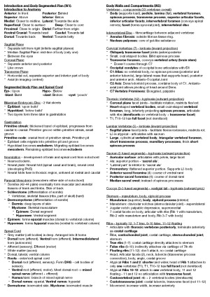 HIGH YIELD Exam Summary notes covering weeks 1-11, summarising all key content from lectures in a concise and high yield manner. Used by many students for HD marks, including myself. Topics: - Introduction and Body Segmented Plan (W1) - Body Walls and Compartments (W2) - Respiratory System (W3) - Cardiovascular System (W4) - Gastrointestinal Development, Stomach and Intestines (W5) - Urogenital System (W6) - Neurocranium and Contents (W7) - Cranial Nerves and the Pharyngeal Apparatus (W8) - Viscerocranium and Contents (W9) - Upper Limb (W10) - Lower Limb (W11)