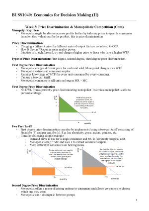 Covers everything from price discrimination to stabilisation policies. Simplified for even those without backgrounds in economics. Week 05 - Price Discrimination (some parts) Week 06 – Pricing with market power 1 Week 07 – Pricing with market power 2 + Monopolistic competition Week 08 – Strategic interaction and business strategy 1 Week 09 – Strategic interaction and business strategy 2 Week 10 – Government interventions and market failures 1 Week 11 – Government interventions and market failures 2 Week 12 - GDP, Unemployment, Inflation and Business Cycles Week 13 - Stabilisation Policies