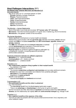 Comprehensive notes covering weeks 1-12, summarising all key content from lectures in a concise and organised manner. Used by many students for HD marks. Topics: - Host Pathogen Interactions (W1) - Mechanisms of Bacterial Pathogenesis (W2) - Virology and Viral Infections (W3) - Pathogenesis of Eukaryotic Infections (W4) - Host Response to Infection — Innate Immunity (W5) - Host Response to Infection — Adaptive Immunity (W6) - Epidemiology of Infectious Diseases (W7) - Antimicrobial Agents and Mechanisms of Resistance (W8) - Vaccines for Infectious Diseases (W9) - Microbial Masterclass - SARS-CoV-2 (W10) - Microbial Masterclass - Rabies and Lyssaviruses (W11) - Microbial Masterclass - Clostridial Infection (W12)