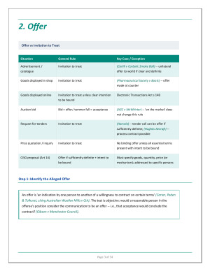 These are comprehensive exam notes and answer scripts compiled from lectures, readings, and tutorials across all examinable topics in Contract A. Structured for quick navigation in exam conditions, with key scripts highlighted in clear, easy-to-follow formats and supported by detailed background explanations. I achieved a final score of 91 in the unit using these materials, including the final exam. These notes are designed to enhance efficiency and performance under exam pressure by including: - Clear introduction, explanatory, and conclusion sentences ready for use - Full topic-based scripts with adaptable “fill-in-the-blank” style responses - Summarised cases and concepts in table format for quick recall and application - A structured, step-by-step method for answering problem questions - Practical support for real-time tutorial participation and assessed discussions Topics Covered: 1. Offer 2. Acceptance 3. Consideration 4. International Contract Law 5. Intention 6. Certainty 7. Capacity 8. Formalities 9. Privity 10. Estoppel 11. Express Terms (Incorporation and Construction) 12. Implied Terms 13. Good Faith