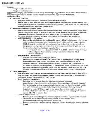 TOPICS: Introduction to exclusionary doctrines Personal jurisdiction: at common law; service in Australia, service in New Zealand Personal jurisdiction: service outside Australia Discretionary non-exercise of jurisdiction: foreign jurisdiction clauses Discretionary non-exercise of jurisdiction: forum non conveniens Intra-Australian and New Zealand cases; - exclusive jurisdiction clauses and non-exercise of jurisdiction; anti- suit injunctions Recognition and enforcement of foreign judgments (common law) Exclusionary doctrines Recognition and enforcement of foreign judgments (statute) Comprehensive scaffold for easy application in exams and self-learning, see page 11, 13 for reference.