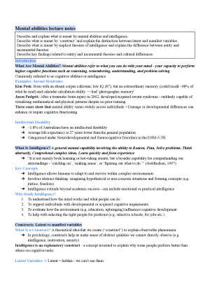 PSYC1002 is a content-heavy subject covering broad and complex topics of psychology. I completed this subject with a HD average - these notes are the exact notes I used to study and revise throughout the semester. They are clear, structured, and exam-focused, covering all learning outcomes. The notes are organised topic-by-topic - they helped me stay organised, save time, and understand what I was learning. Topics are: Cognitive Abilities Mental Health Perception
