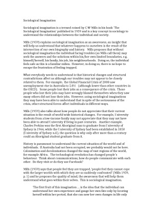 The concept of sociological imagination is explained in a simple way with examples that may help the student to understand it. References are contained in the notes.