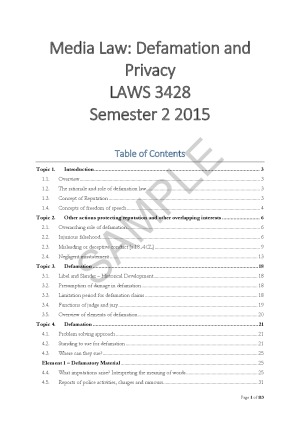 Defamation and Privacy - Comprehensive and well formatted study notes [LAWS3428/LAWS5128]