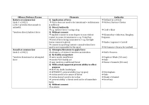 This document contains a table listing all of the offences learnt throughout the semester with their elements and authorities.