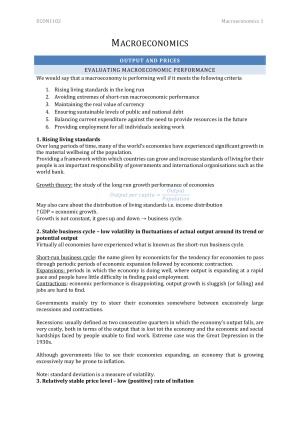 These are extensive notes across all chapters and topics covered in ECON1102, including the new chapter in the 4th edition of Principles of Macroeconomics about macroeconomic policy. Contains relevant diagrams, equations and definitions necessary for in-class tests and the final exam.
