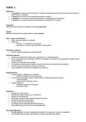 Statistical Analysis - Lecture, Tutorial & Textbook notes