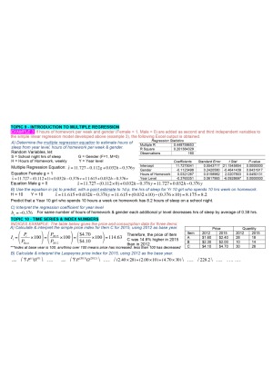 Statistical Analysis - Exam Summary Notes Two single sided A4 Sheets of summary notes allowed to be taken into the final exam. Contains: Topic 1 - Descriptive Statistics Topic 2 – Probability Topic 3 - Normal Probability Distributions Topic 4 - Sampling & Sampling Distributions Topic 5 - Estimation & Confidence Intervals Topic 6 - Fundamentals Of Hypothesis Testing - Single Mean & Proportion Topic 7 - Estimation & Hypothesis Tests - Comparing Means & Proportions (2 Or More) Topic 8 - Simple Linear Regression (Slr) & Correlation Topic 9 - Introduction To Multiple Regression Topic 10 - Time Series & Index Numbers