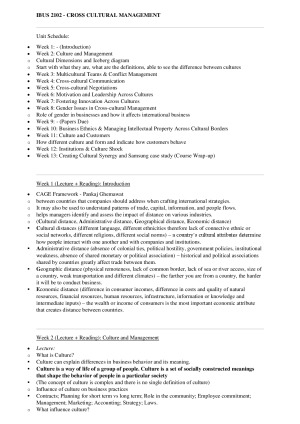 Full Lecture Notes and Readings for IBUS2102: Cross-Cultural Management from Week 1 to Week 13.