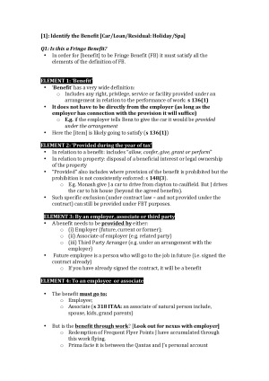 Step by step way of answering BTC3150 exam questions. Hints for certain topics and what to look out for in the exam. Very high quality notes got 90 for the unit. Provided a sneak peak for Fringe benefits