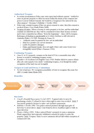 FULL COLOUR ORGANISED EXAM NOTES. Complete contents page; created for seamless navigation in open-book exam setting. Includes flow chat for approaching problem questions in an exam. Covers all topics including: - Trespass to Person - Trespass to Land - Trespass to Goods - Defences to Intentional Torts - Nuisance - Negligence (Duty of Care) - Special Categories of Duty of Care - Breach of Duty - Scope of Liability - Defences - Pure Economic Loss - Statutory Authorities - Vicarious Liability & Non-Delegable Duty - Worker's Compensation - Motor Accident Compensation - Concurrent and Proportionate Liability - Remedies - Death