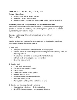 High-quality notes from all lectures, which include: - key terms bolded - headings - graphics - tables of information Lecture 1 - Context and General Approach Lecture 2 - Tools and Techniques Lecture 3 - Traditional Process Methods Lecture 4 - STRADIS, JSD, SSADM, SSM Lecture 5 - Scrum, XP Lecture 6 - PRINCE2 Lecture 7 - Agile Lecture 8 - ITIL (IT Infrastructure Library) Lecture 9 - OO Methods Lecture 10 - Evaluation Lecture 11 - CMMI, PSP, TSP Lecture 12 Common Hybrid Methodologies