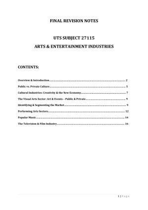 Comprehensive notes for UTS 27115 (Arts & Entertainment Industries)