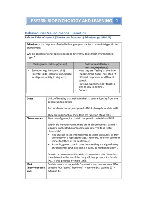 Comprehensive PSY236 notes including textbook information and tutorial notes. Student friendly, including tables, graphs and diagrams to enhance understanding.