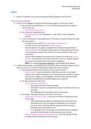 An easy to follow, step-by-step guide to answering problem questions. It has relevant legislation, case law, and examples included. Perfect to take into an exam! Covers all topics including: - Intentional Torts -Intentional trespass relating to person -Trespass to Land -Nuisance -Intentional torts relating to goods -Conversion -Detinue -Actions on the case for nervous shock or physical injuries -Defences to Intentional Torts -Negligence -Novel Duties of Care - Pure Economic Loss - Statutory Authorities - Vicarious Liability & Non-Delegable Duty - Concurrent and Proportionate Liability -Defences to Negligence -Death -Workers Compensation -Motor Accidents Compensation