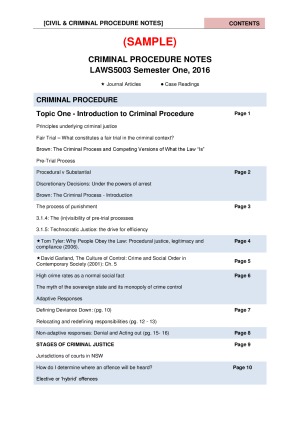 HD STANDARD - Incredibly detailed Criminal Procedure notes, organised by topic with quick reference contents guide for easy access during exams. Includes detailed guide to new NSW bail laws. Great alternative to the textbook. Detailed notes for Civil Procedure also available, as well as a handy problem solving guide for both subjects which references these detailed notes where more in depth response or short answer is required. Together, they'll get you through the exam.