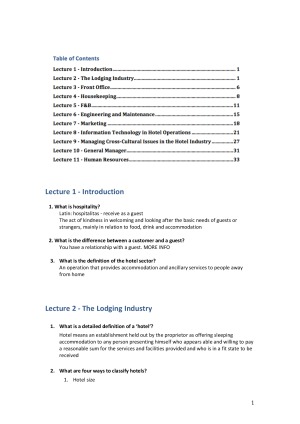 The HOSP2001 lecture content has been put into questions as a way to easily quiz yourself after each lecture and before exam time. Includes all course content. Highlighted questions are especially important
