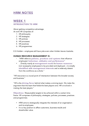 Compiled notes of all semester 1 content for MGC2430 HR Management, inclusive of textbook notes and lecture notes.