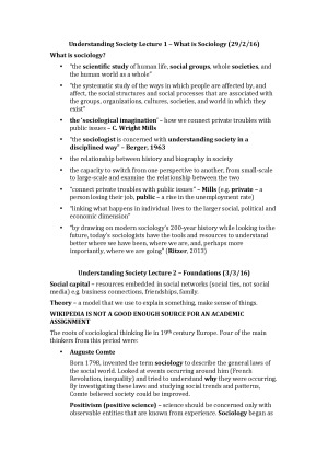 Full course summary for Unimelb SOCI 10001: Understanding Society. Using these notes I achieved a mark of 74 in the subject (H2B grade).