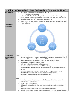 Summary of whole course for DEVT10001: 1- Introduction 2- Conquest and Colonisation of Latin America 3- Africa: the Transatlantic Slave Trade and the ‘Scramble for Africa’ 4- Colonial Rule in Asia 5- Decolonisation and the Consequences of Colonialism 6- Debt and Structural Adjustment 7- Trade: Free or Fair? 8- Migration and Development 9- Climate Change: Another North/ South Divide? 10- Aid for Development 11- BRICS: A New Global Order? 12- The SDGs