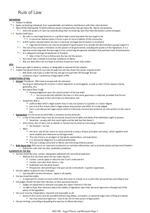 These notes are for BJU300. The notes are: - Divided by topics - Written in dot points. - Easy to understand. - Headings making easy to find stuff - The notes on the following topic: > Natural Law Theory > Legal Positivism > Rule of Law > Evolutionary Legal Theory > Marxist Legal Theory > Soviet Jurisprudence > Critical Legal Theories > Feminist Jurisprudence > Postmodern Jurisprudence