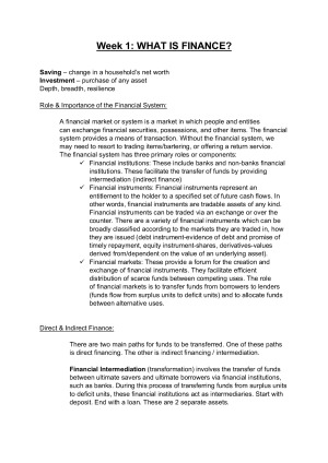 Comprised of lecture notes, textbook notations, comments from seminars and further research, this set of notes provides comprehensive information which will sufficiently prepare you for any assignments and examinations. These BFF1001 notes provide relevant calculator steps, utilise formulae, graphs, diagrams and images where necessary and provide both the basics to get you by, as well as the detail that those seeking higher marks will need.
