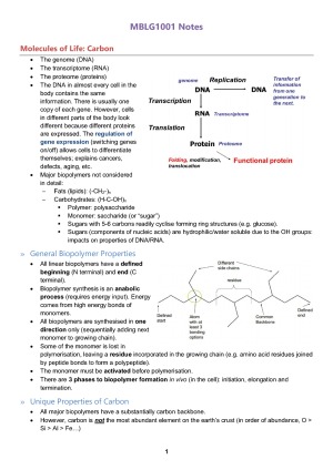 (HD) Molecular Biology and Genetics (Intro) (MBLG1001) Notes