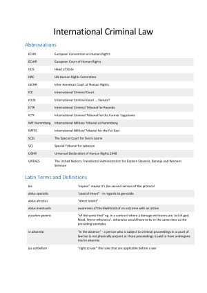 Combination of lecturer's slides and notes from textbook for 200220 - International Criminal Law. Includes case summaries from textbook.