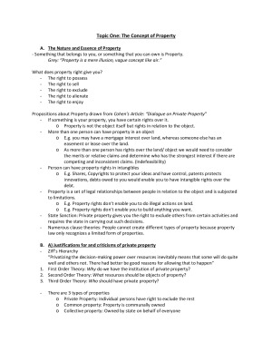 Completed Property Law A in Sem 1, 2016. Achieved a High Distinction. Topics include (Includes all cases from Reading Guide 2016 and Legislation Summary): 1. Concept of Property 2. Title to Land 3. Introduction to the Fragmentation of Proprietary interests 4. Tenure and Estates 5. Adverse Possession 6. Equitable and Legal Property 7. Leasehold Interest 8. Contractual Licenses 9. Easements 10. Mortgages 12. Sale of Land 13. Creation of Leasehold Interests