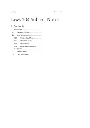 Comprehensive study notes for LAWS104 with headings, glossary and table of contents. Also includes pointers for legal writing. Perfect to add to and use for exam prep.