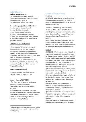 Concise notes, totalling 15 pages, for LLAW2213 from Semester 1 2016.