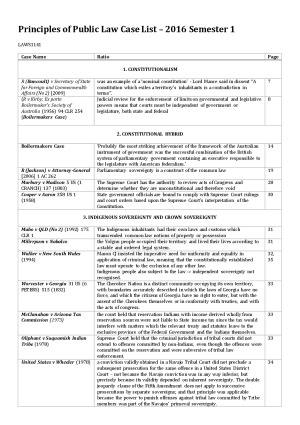 These notes cover every single reading in the most updated course outline of LAWS1141, including all the cases you need to know for the final exam. At the end of the notes it contains a legislation list as well as a case list which provides a quick summary of the ratio of each case and pinpoint reference so that you can read about it in more detail if necessary. The preview contains a sample page from the case list as well as the main body of notes. Used in the mid semester assignment and final exam to get a HD.