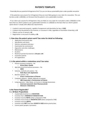 These notes encompass all you need for Intellectual Property, with enough detail to allow you to understand the whole unit without any unnecessary text to waste your time. Includes case summaries and relevant legislation (broken down into simple English) in a very organised layout. Includes exam templates for Copyright and Patents