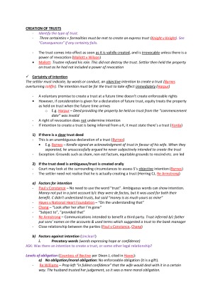 The notes summarise theory and case law, laying out an easy-to-follow process for application. I studied Trusts in Semester 1, 2016 and got a HD (81).