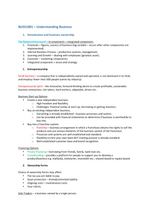 Clear succinct notes for BUSS1001 - from lectures, tutorials, extra readings, PASS etc.