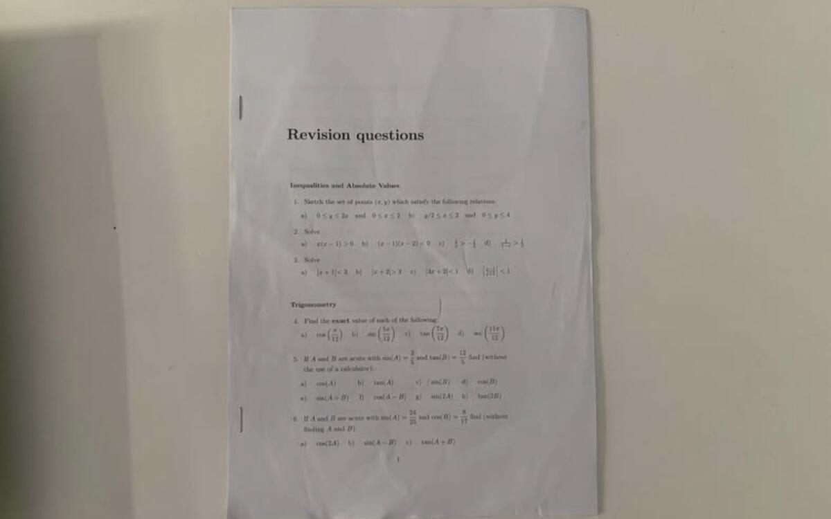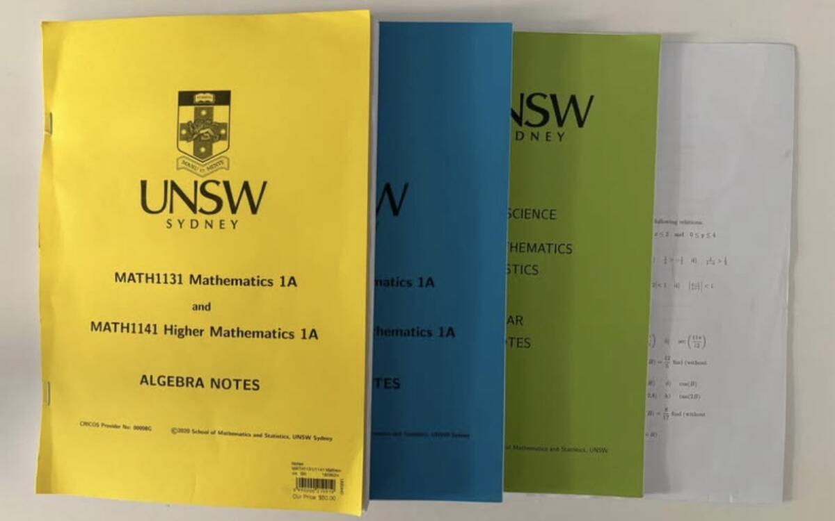 unsw math1131 course pack. contains algebra notes, calculus notes, maple notes, and revision questions. no writing inside as i didnt use them.