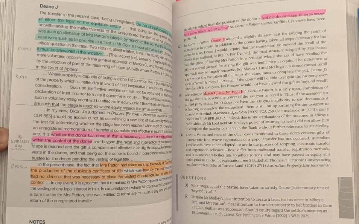 Selling my Equity textbook bundle, already organised for exam prep. I bought these from a previous student who had carefully highlighted key sections and added tabs to important topics. I kept their structured colour-coding system (each colour has a specific purpose) and added a few extra tabs for the midterm and final. The setup makes it easy to quickly find core principles, elements/tests, key cases, and explanations. I used this exact system for my exam and it saved me a lot of time because everything was clearly organised around the main examinable points.