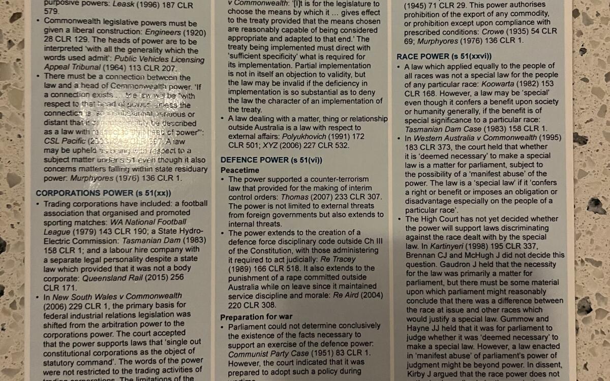 LexisNexis Quick Reference Card 6 pages of summary notes on Constitutional Law Handy for exam