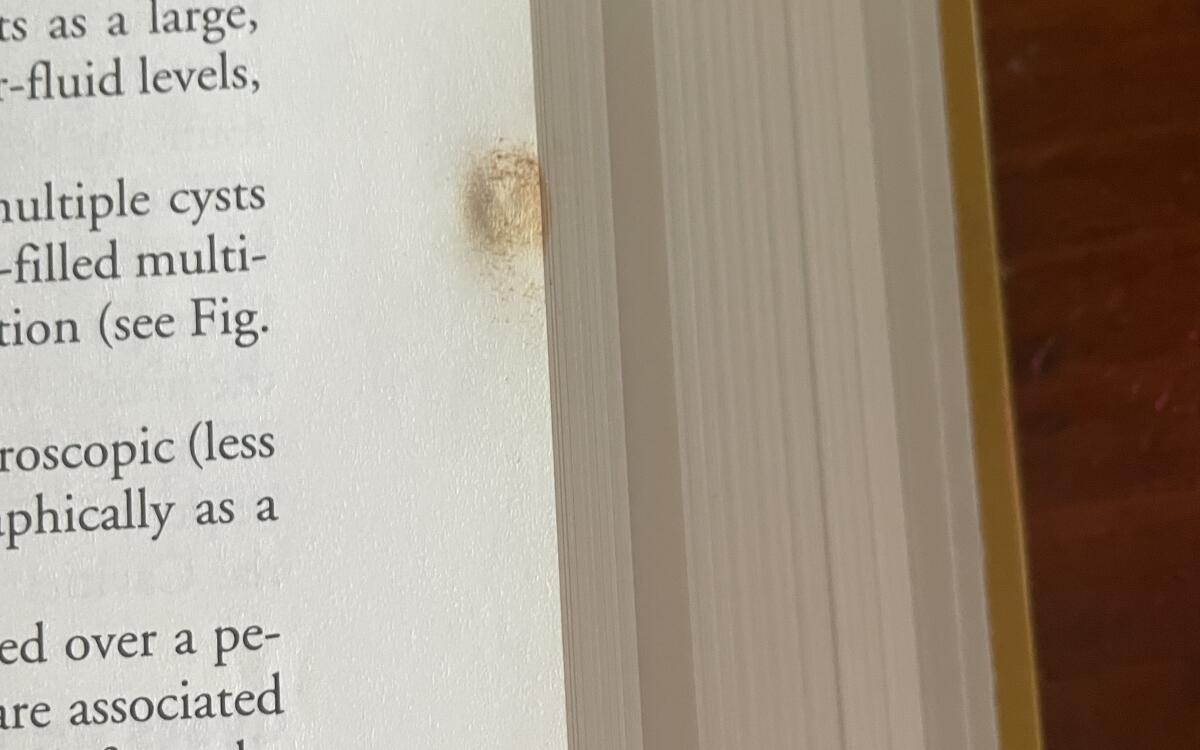 Overall still in good condition - however it was kept in a box in storage for a while and there was a small bug that got squashed (rip) on pg 290 so there is a stain across the ends of the pages close to the top (pls see pictures attached for reference) Besides that, the book is still in great condition and has no water damage, tears or decay
