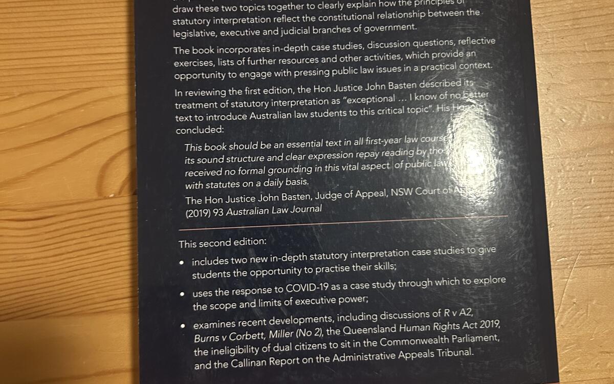 Selling Public Law and Statutory Interpretation: Principles and Practice (2nd Edition) by Crawford, Boughey, Castan & O’Sullivan. Core textbook for Gov. & Public Law / Statutory Interpretation units at Western Sydney University - Current edition - Clean inside, no major damage (see photos) - Minor wear on cover (see photos) Excellent resource for understanding statutory interpretation + constitutional/public law concepts. > Pickup in Mona Vale / Northern Beaches area OR WSU Parramatta South / Parra City Campus > Can post at buyer’s expense