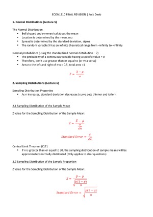 From Week 5 (Normal Distribution) onwards for ECON1310. All formulas displayed clearly and in context!