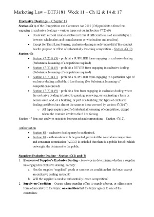 Exam notes - with case summaries. Topics: Copyrights Commercial Designs Patents Obligation of Confidence Competition Misuse of Market Power Exclusive Dealings