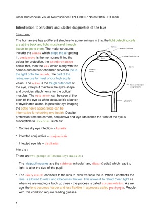 OPTO30007 Clear and concise Visual Neuroscience Notes 2016 - H1 mark