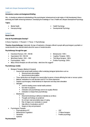 Lecture Notes for Health and Lifespan Development Psychology
