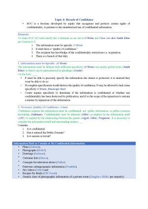 Comprehensive long notes, includes: 1. Intro to equity - Maxims 2. Equitable Assingments 3. Breach of Confidence 4. Fiduciary Duties 5. Fiduciary Breaches 6. 3rd Party Liability 7. Personal Remedies 8. Proprietary Remedies 9. Equity and Statute
